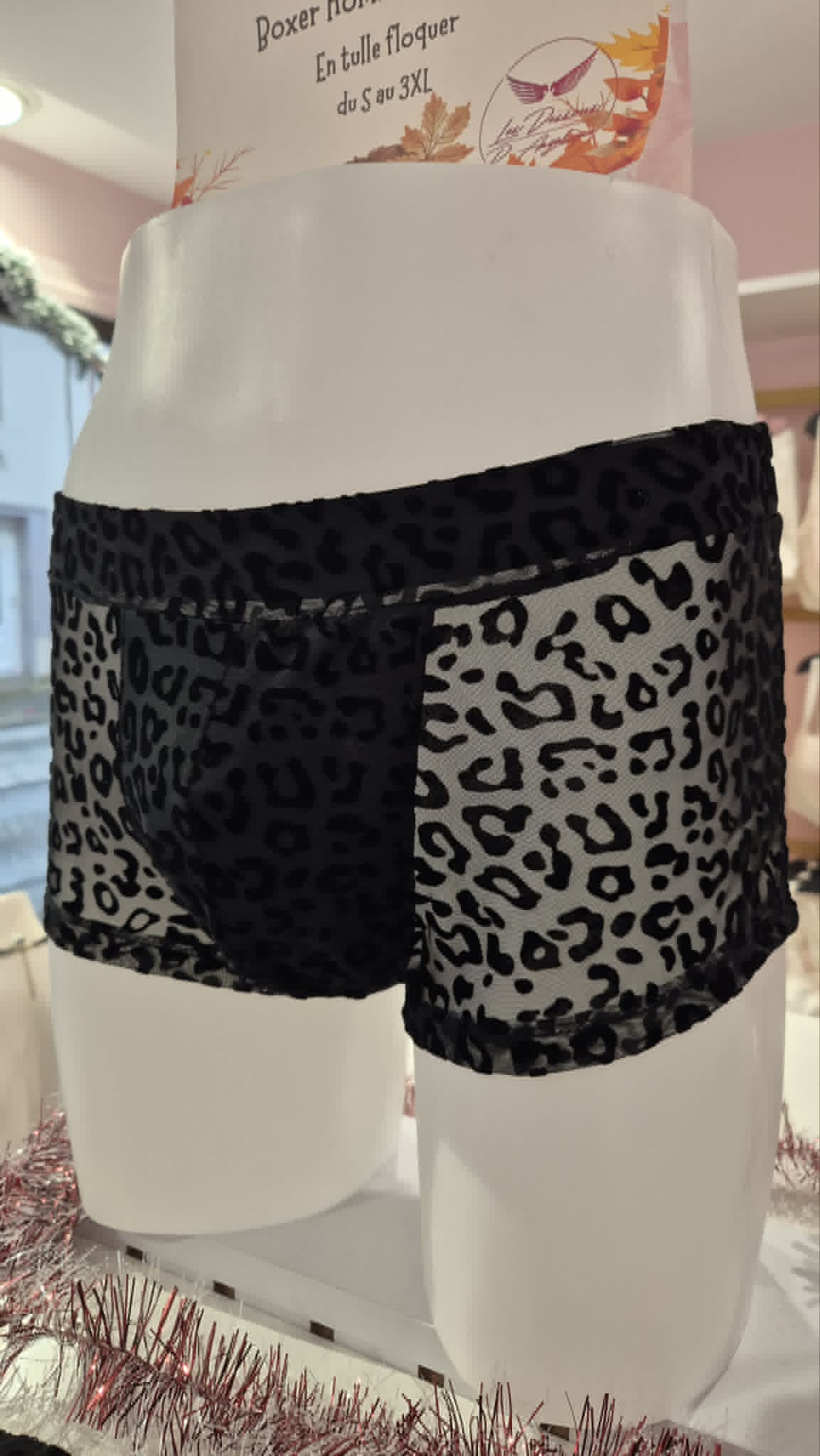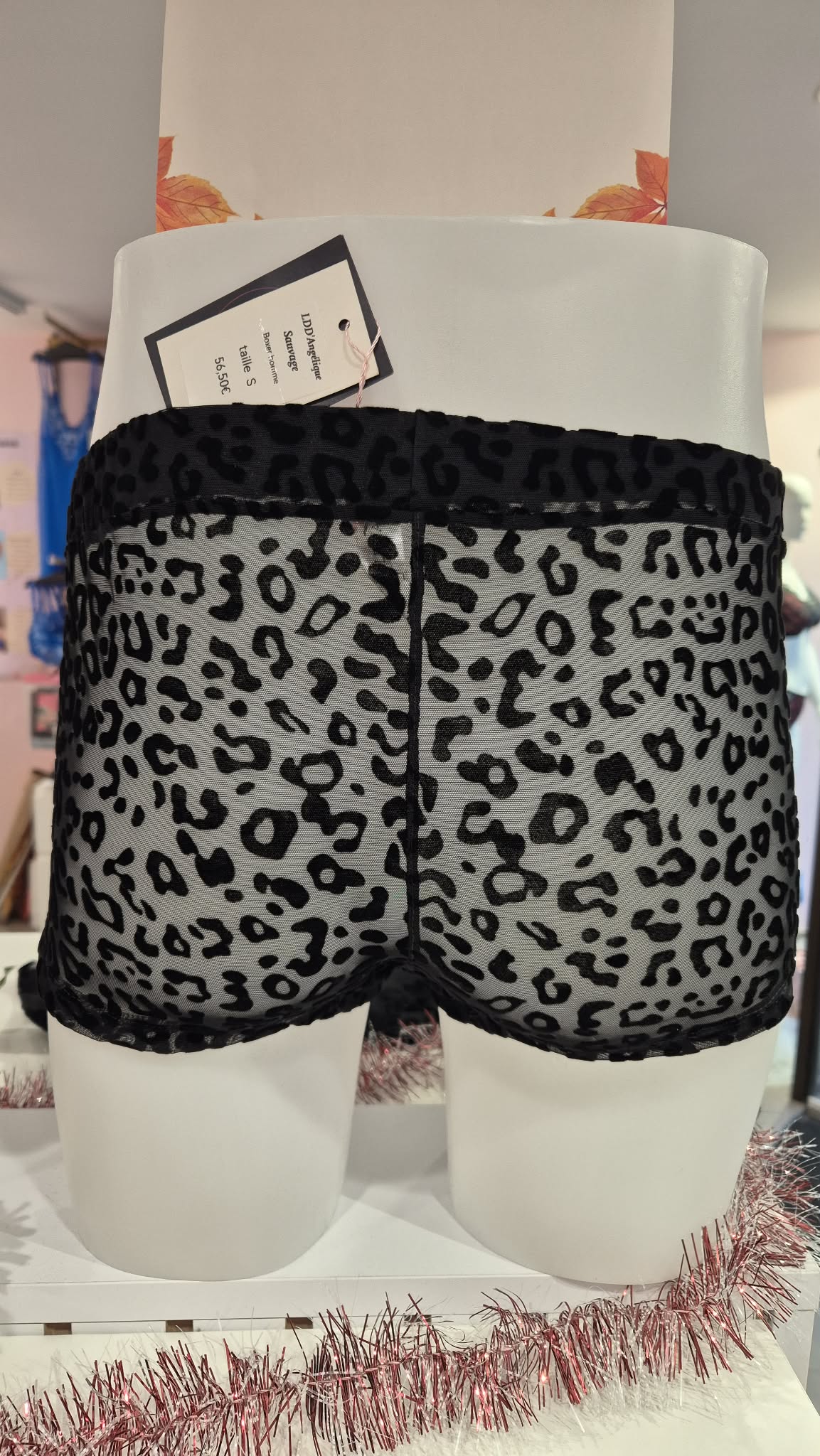Tulle noir, velours léopard, allure instinctive. Un boxer qui mêle élégance et caractère.