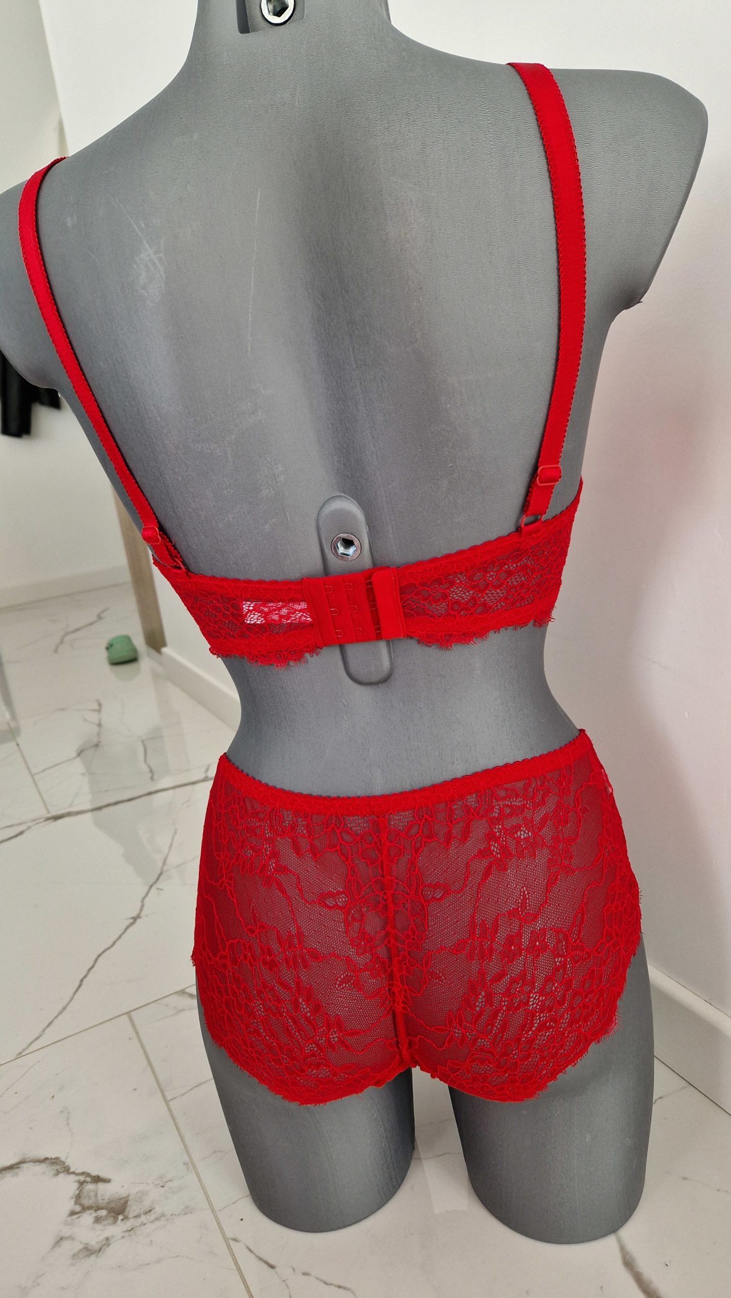 La ligne Rubis porte bien son nom un rouge coquelicot qui lui donne un parfum sulfureux et incendiaire … Matières en dentelle et un tulle italiens.