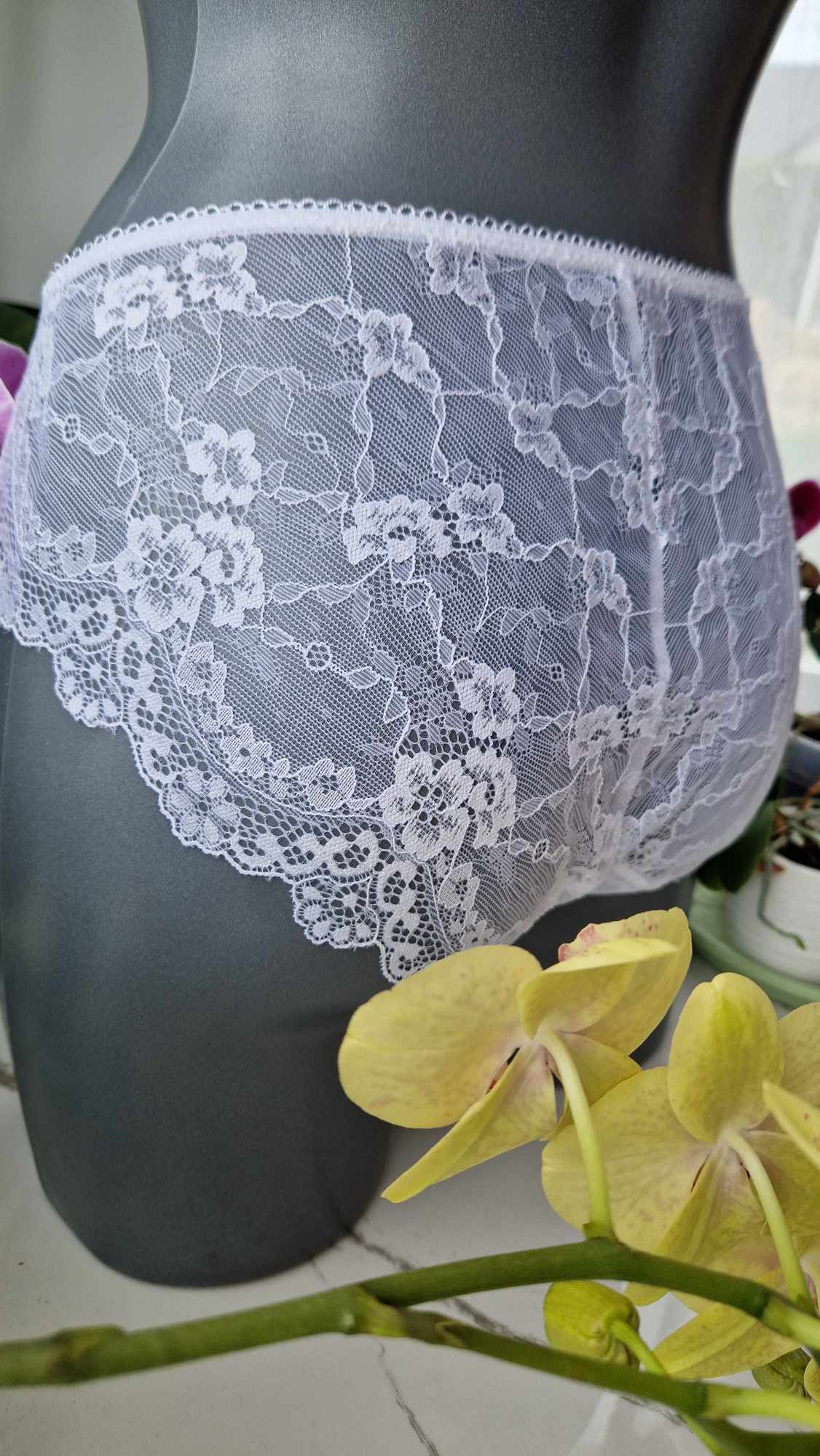 Détail: La culotte est conçu pour allier confort et élégance. Sa dentelle italienne d’un blanc immaculé est rehaussée par des motifs floraux délicats en bleu clair. La coupe enveloppante met en valeur les courbes féminines tout en offrant une sensation de légèreté. Les couleurs nacrées ajoutent une touche sophistiquée et sensuelle.