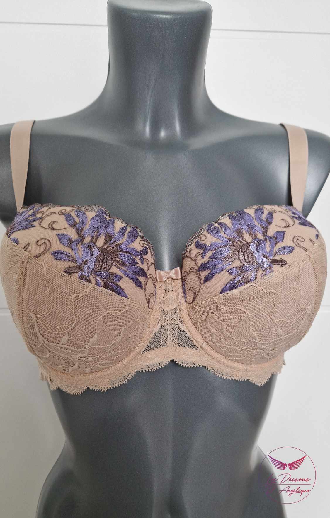 Magnifique collection sur fond de couleur beige avec de magnifiques fleurs aux tons lavande.