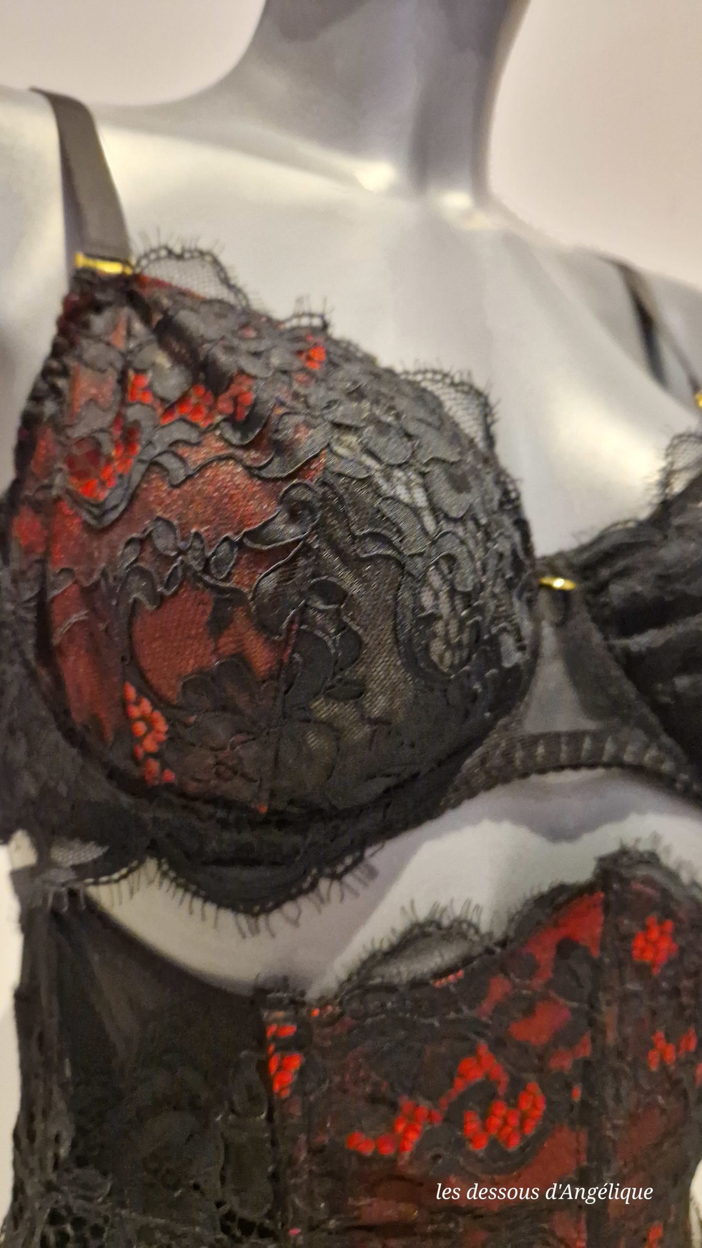 La gamme Grenat , de la dentelle noir sur fond rouge, un mélange aussi sexy qu’intemporel.