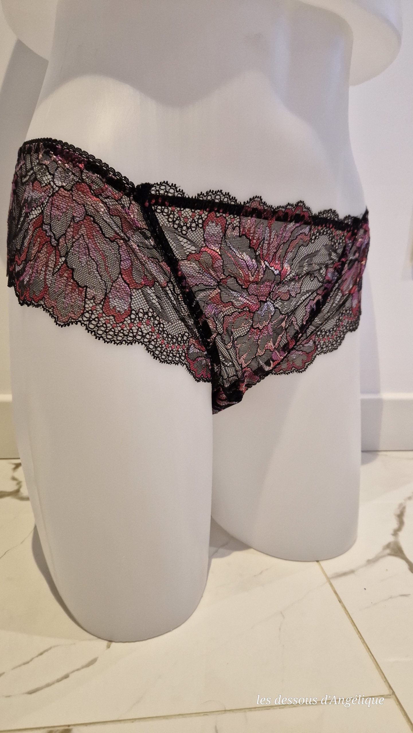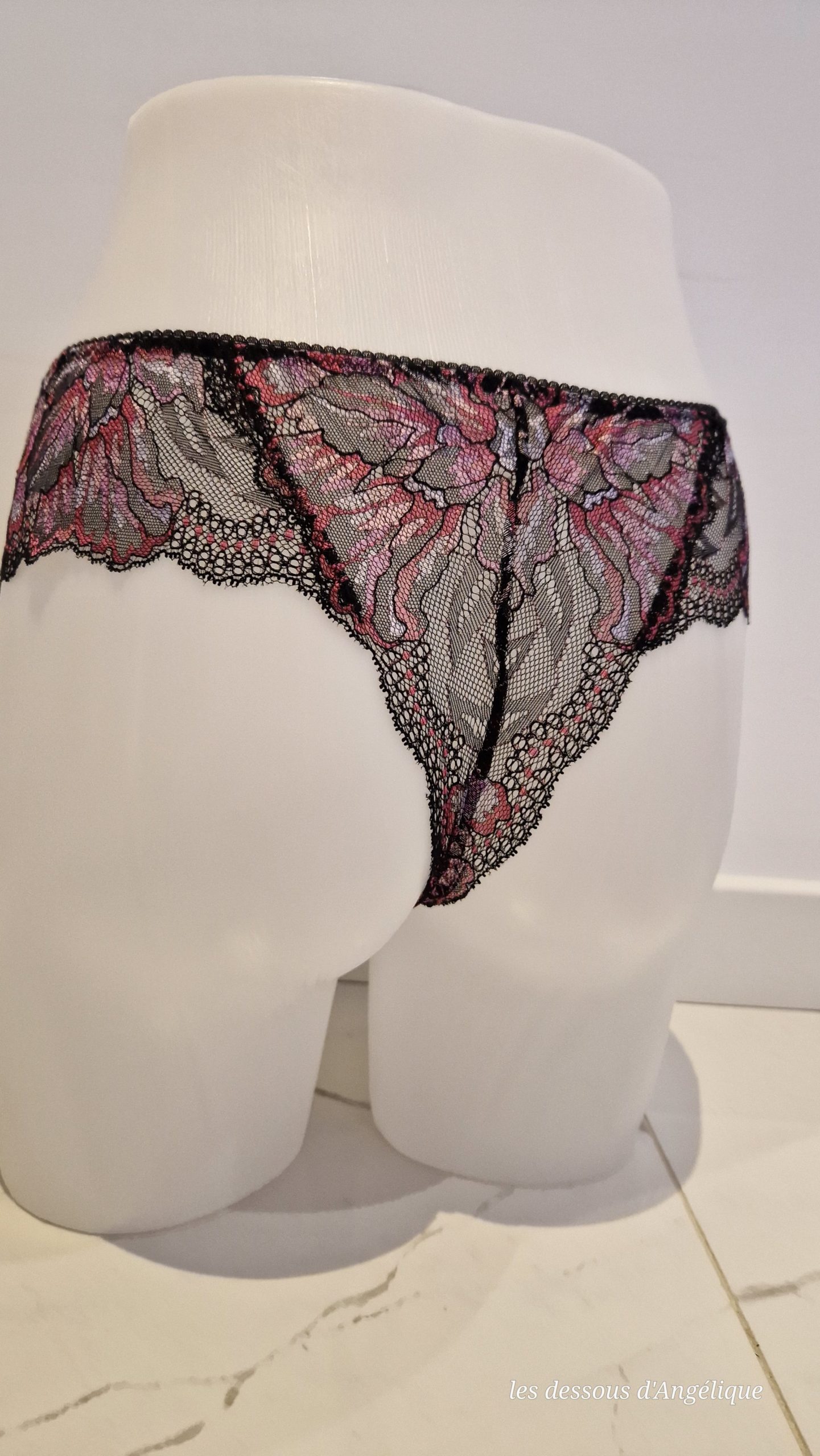 Rhodonite est un mélange de dentelle rose et noire avec une touche de tulle doré sous la poitrine.